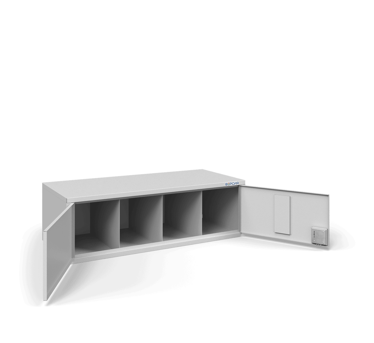 Конструкция включает две дверцы, каждая из которых закрывается надёжным накладным замком типа «БИФ» — трёхригельным устройством с высоким уровнем взломостойкости. Внутреннее пространство разделено на четыре изолированные ячейки, что обеспечивает аккуратное и безопасное хранение каждого комплекта СИЗ.