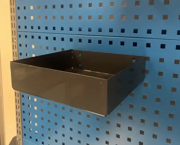 Предназначены для хранения лёгких вещей, устанавливаются на перфорированные профили и панели.