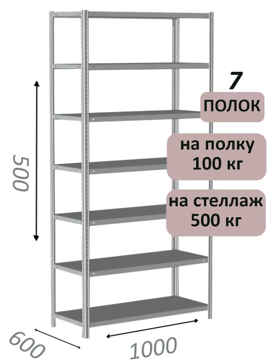 Стеллаж металлический полочный МС-500 500х1000х600, 7 полок, светло-серый