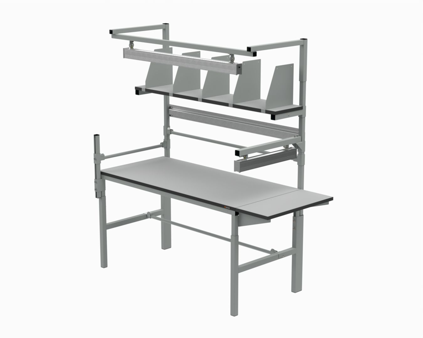 Кроме упаковочных модулей, можно также дополнить рабочее место стандартными аксессуарами, такими как полки, перфорированные экраны, освещение, электромонтажные панели, держатели для мониторов и чертежей, различные лотки, подвесные тумбы и многое другое.