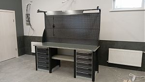 - Боковые перфорированные стенки тумбы и опоры позволяют размещать на них различные стандартные аксессуары